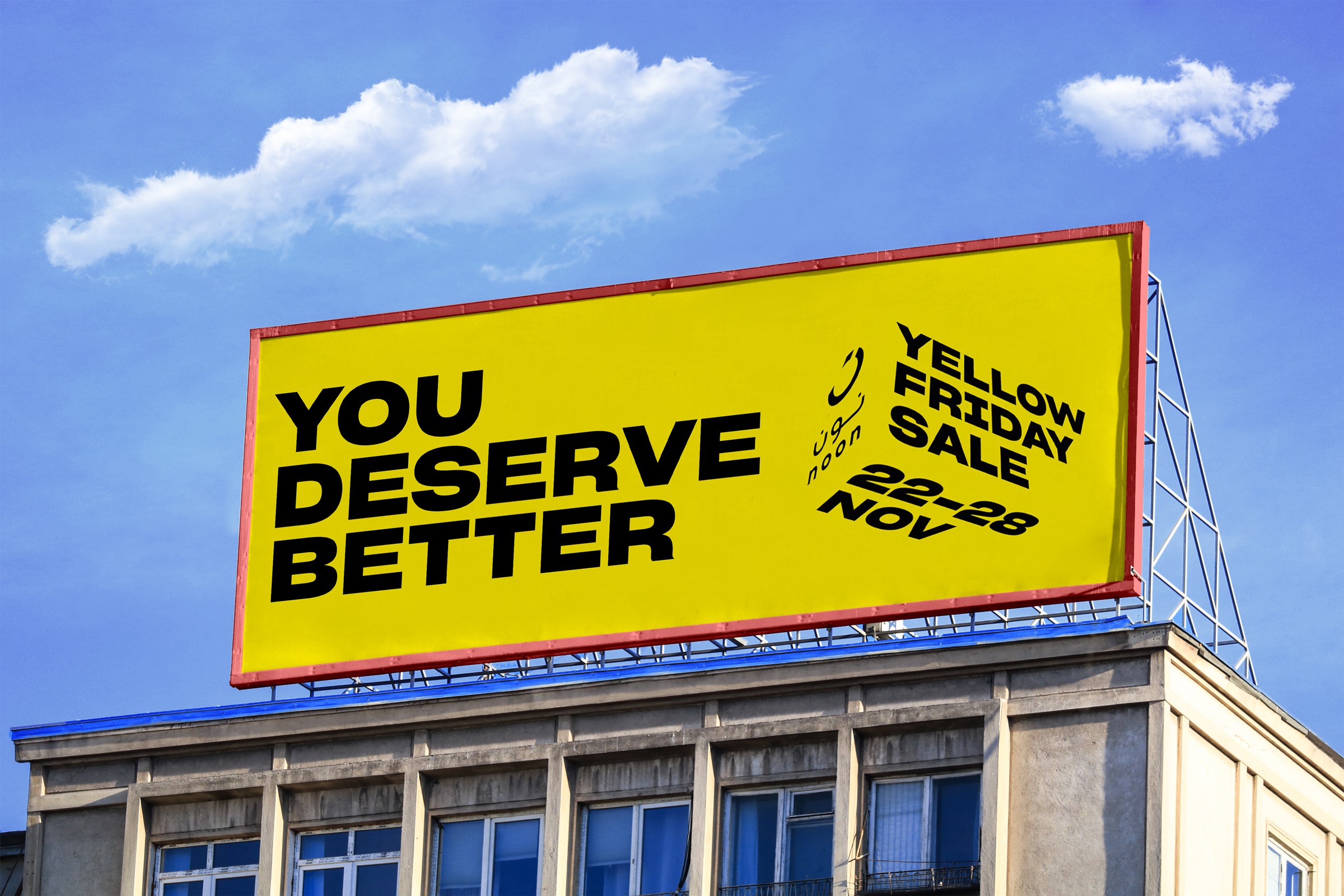 The Yellow Friday Sale is Noon’s largest annual retail moment — a high-frequency, multi-category event that demands both immediacy and consistency at scale. The objective was to design a flexible visual system that could sustain intensity over time, adapt across platforms, and remain unmistakably Noon.Instead of treating Yellow Friday as a one-off campaign, we approached it as a system problem: how to build a visual language that could handle thousands of permutations — offers, categories, durations, and formats — without losing clarity or brand recognition.The answer was a bold, rule-based design system where colour, type, and hierarchy do the heavy lifting.The result is a robust, high-impact design system that supports Noon’s most demanding commercial moment — delivering clarity under pressure, adaptability at scale, and a strong, unified brand presence throughout the Yellow Friday ecosystem.